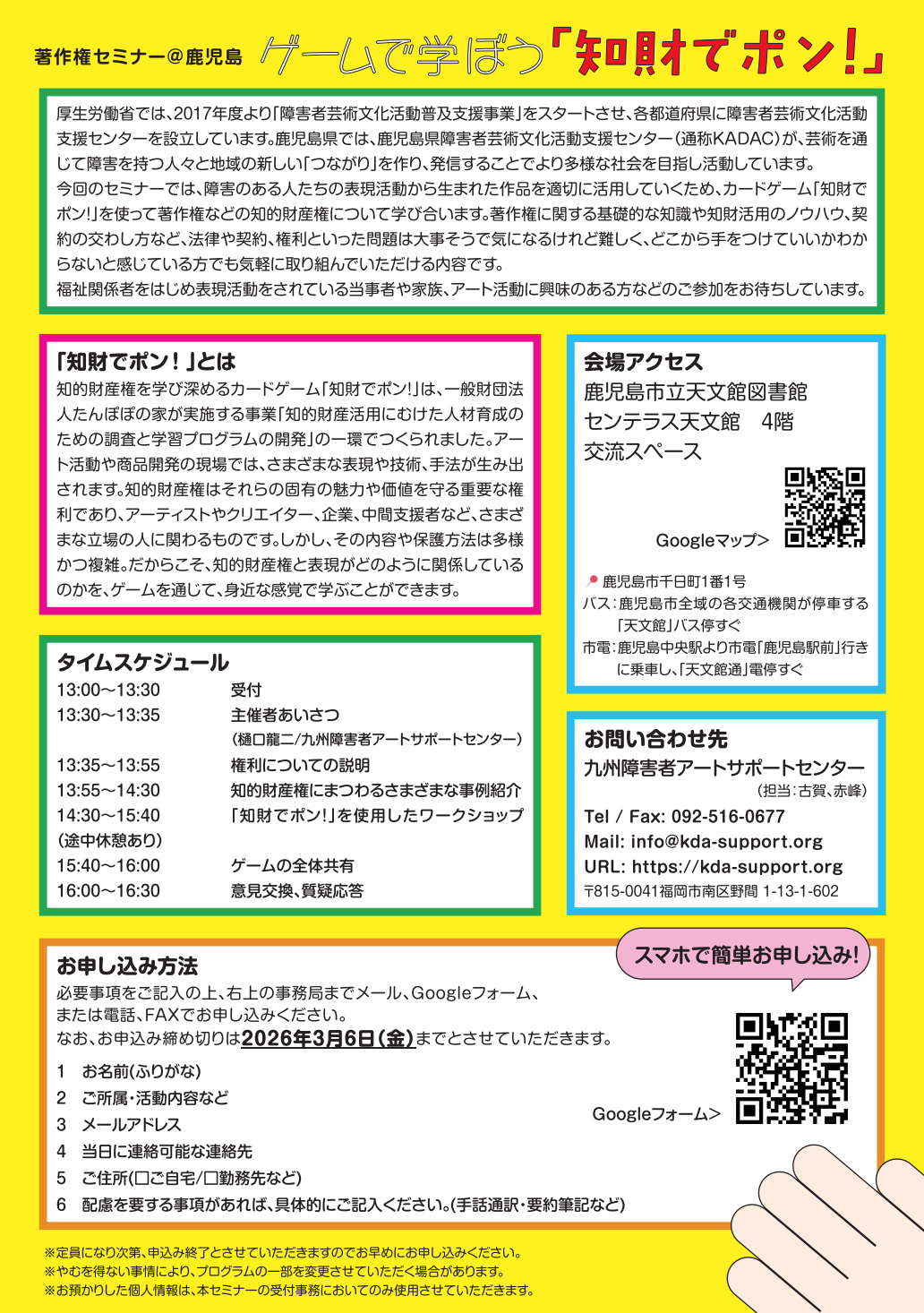 - TEL/FAX: 092-516-0677 / Mail: info@kda-support.org