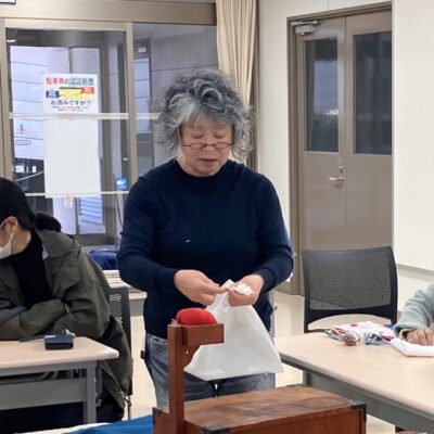 2026年3月7日(土)の午後、かごしま文化情報センター(KCIC)前の市民アートギャラリーにて芸術体験ワークショップ 「ばあばに学ぶ手仕事・手縫いで布巾づくり」を開催しました。